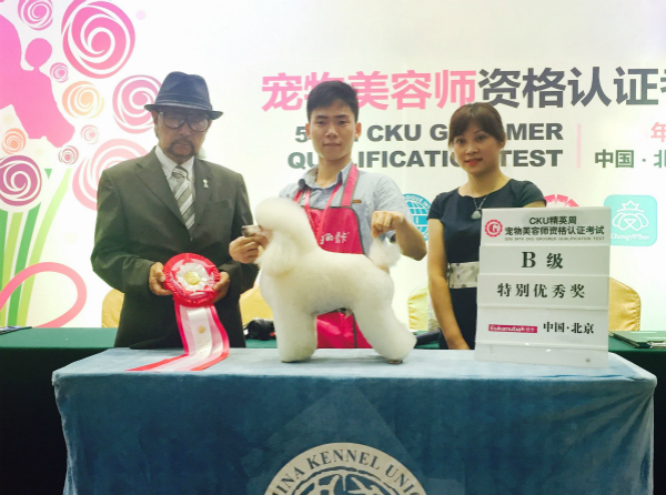 武漢貴族寵物美容培訓學校優秀學員姚正元同學榮獲2016年CKU美容認證考試B級特別優秀獎